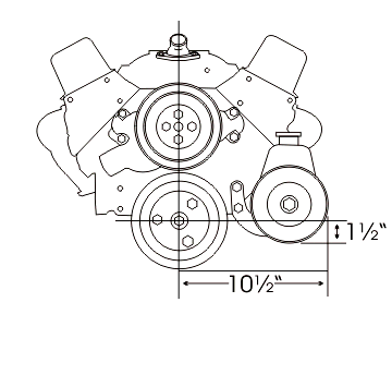This bracket is designed to be used with the metric G.M. remote reservoir type 2 pump. Designed for street rod applications, it sits high enough to clear most chassis parts and steering gears. WILL NOT WORK WITH LOW PROFILE BRACKETS. Pump is driven off the outer groove of a 3 groove crank pulley. Pump uses an aluminum V-belt pulley available from us or other street rod suppliers. (Short Water Pump only). |