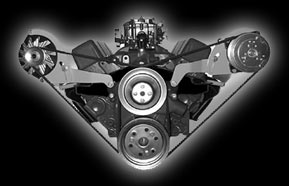 A very versatile street rod style bracket system. Works well with most induction systems. Will clear multiple carbs, fuel injection, etc. Bolts to the head and top water pump bolt holes. The alternator bracket will fit all 1969 and newer heads. The A.C. Compressor bracket fits all G.M aluminum heads including the fast-burn aluminum heads and may be used on 1969 thru 1986 cast iron heads by drilling and tapping one hole for the upper mounting point. Will clear up to 3 in. tall center bolt valve covers when used on 1987 and later heads. Will clear up to 3 3/4 in. tall valve covers when used on 1986 and earlier heads. |